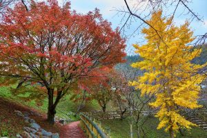Nếu bạn đủ may mắn để đến được vùng Chubu của Nhật Bản mùa thu này, công viên Obara Fureai ở tỉnh Aichi là điểm đến không nên bỏ qua, vì bạn sẽ được thưởng thức một mùa thu kỳ lạ, anh đào nở giữa mùa lá đỏ, tạo nên một cảnh tượng thiên nhiên tuyệt đẹp.