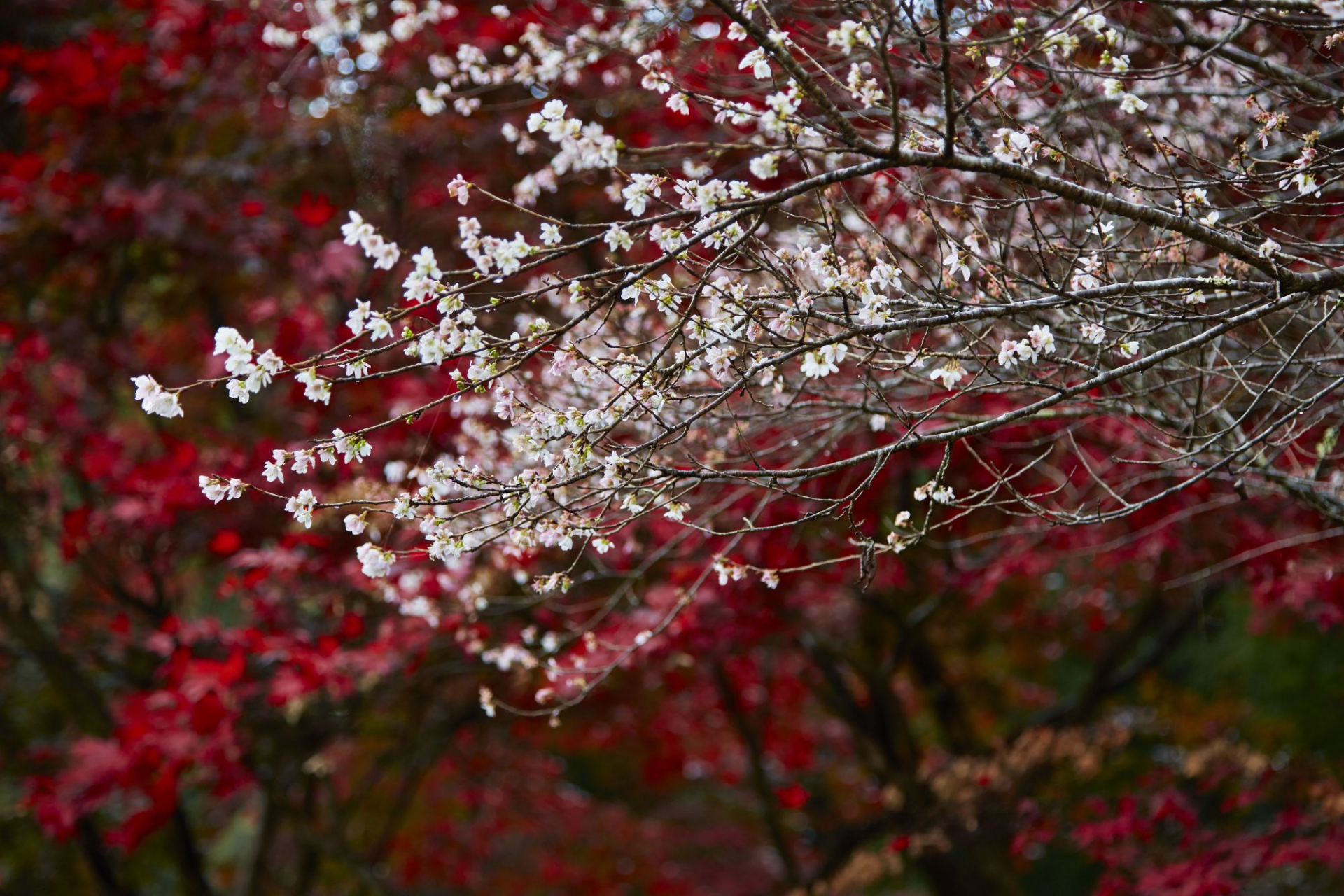 Nếu bạn đủ may mắn để đến được vùng Chubu của Nhật Bản mùa thu này, công viên Obara Fureai ở tỉnh Aichi là điểm đến không nên bỏ qua, vì bạn sẽ được thưởng thức một mùa thu kỳ lạ, anh đào nở giữa mùa lá đỏ, tạo nên một cảnh tượng thiên nhiên tuyệt đẹp.
